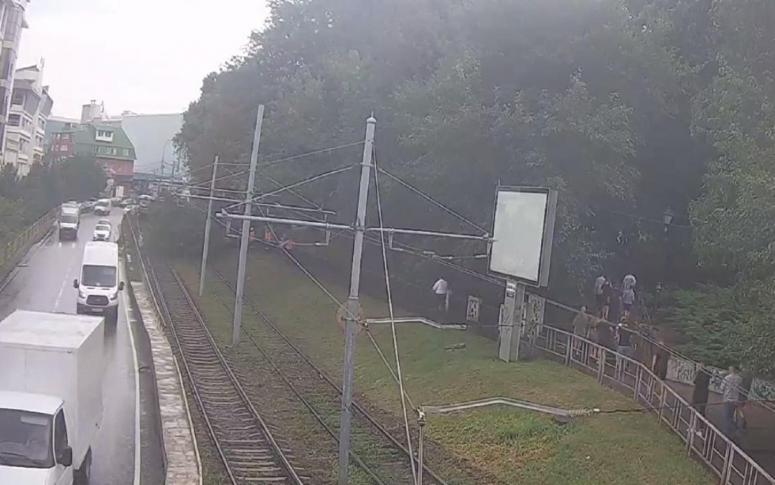 Дерево с трамвайных путей около Вишняковского сквера убрали. Движение восстановлено.