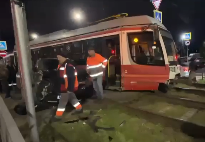 От сильного удара трамвай сошел с рельсов. Из-за этого трамваи 3-го, 6-го, 7-го, 11-го и 21-го маршрутов остановились в обе стороны.