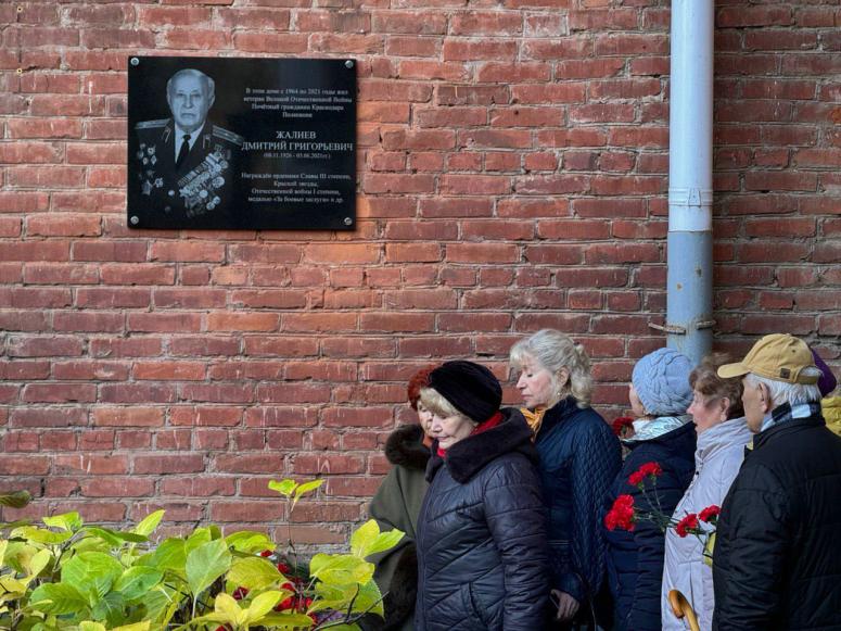 В Краснодаре состоялась церемония увековечивания имени ветерана Великой Отечественной войны Дмитрия Григорьевича Жалиева. На дом, где он жил - ул. Коммунаров, 209, - установили мемориальную табличку.