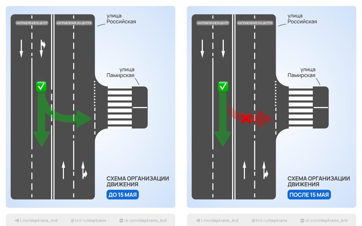 По данным ГИБДД, на перекрёстке улиц Российской и Памирской часто происходили ДТП. Эта мера снизит аварийность.