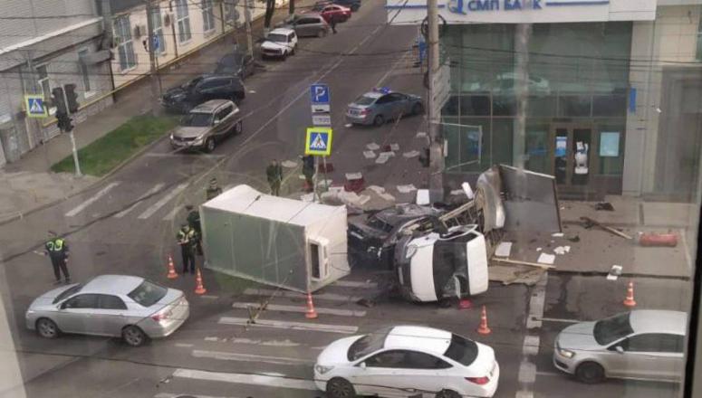 Утром в понедельник, 18 апреля, в Краснодаре на пересечении улиц Северная и Янковского произошло серьезное ДТП. Судя по кадрам с камер видеозаписей, BMW на полном ходу на перекрестке врезалась в грузовую «ГАЗель». От удара отечественную машину выкинуло на тротуар.