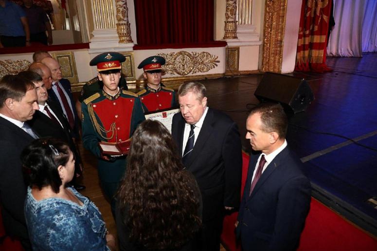 В Краснодаре прошла церемония передачи медали «Золотая Звезда» вдовам военнослужащих, погибших при выполнении воинского долга. В ней приняли участие полпред президента РФ в ЮФО Владимир Устинов и губернатор Кубани Вениамин Кондратьев.