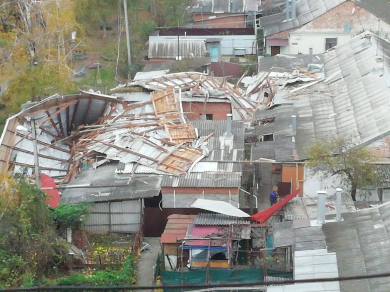 По данным краевого оперштаба, упавшие обломки повредили кровлю нескольких частных домов и газовую трубу — обесточены 5 частных домовладений. Погибших и пострадавших нет. Сейчас упавший участок кровли убирают. Ремонт выполнят, как только улучшатся погодные условия.