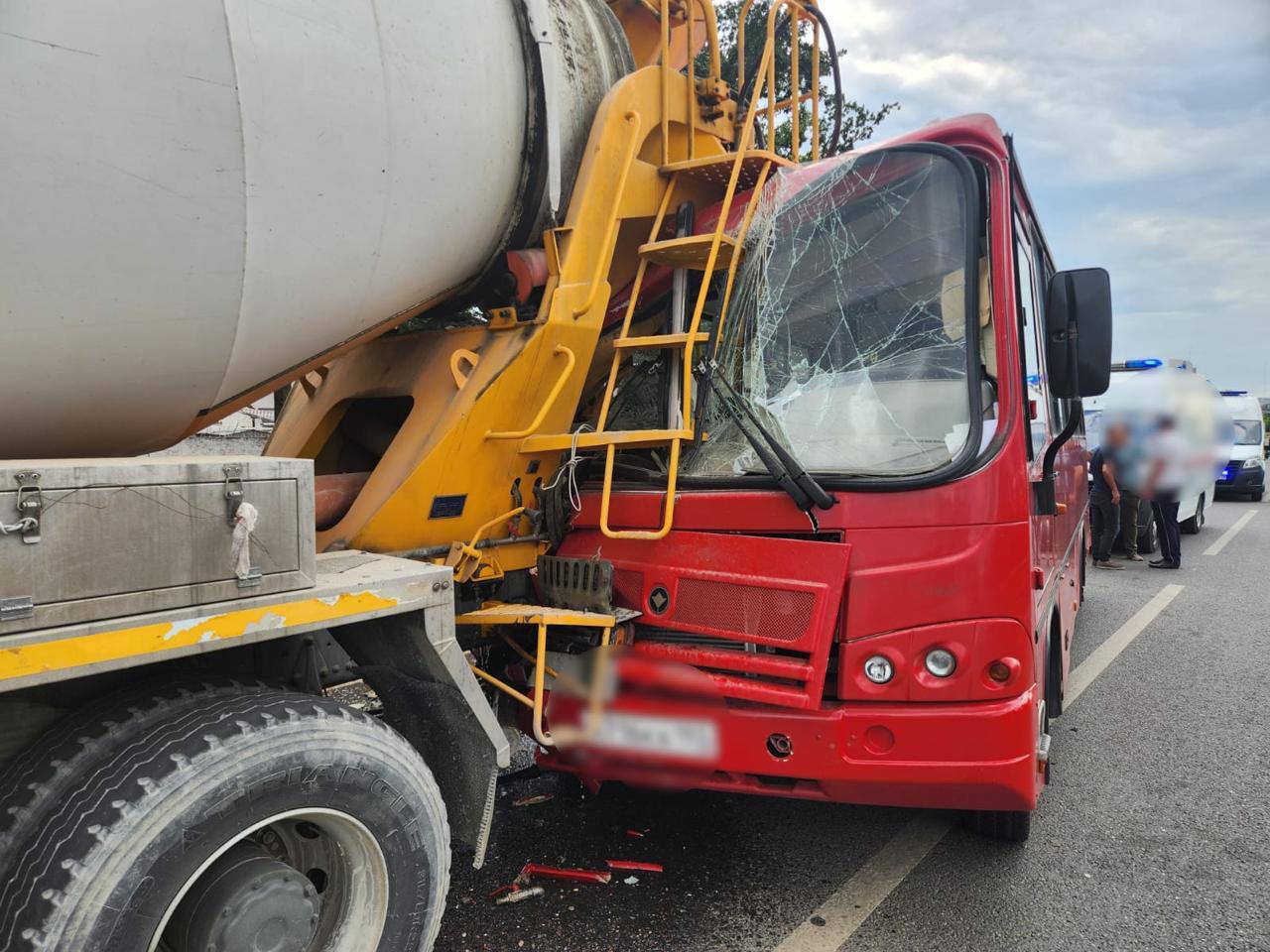 Тяжелая авария произошла днем 8 августа в краевом центре. Возле дома № 58/9 на улице Калинина столкнулись пассажирский автобус маршрута 166А и автобетоносмеситель. С места ДТП в больницу доставили семерых человек, среди которых — несовершеннолетний.