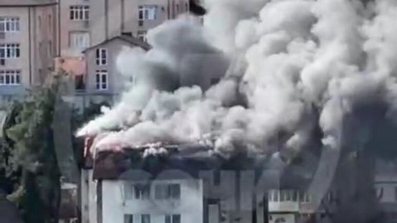 Горящая мансарда в доме на Альпийской в Сочи / кадр из видео, ЧП Сочи