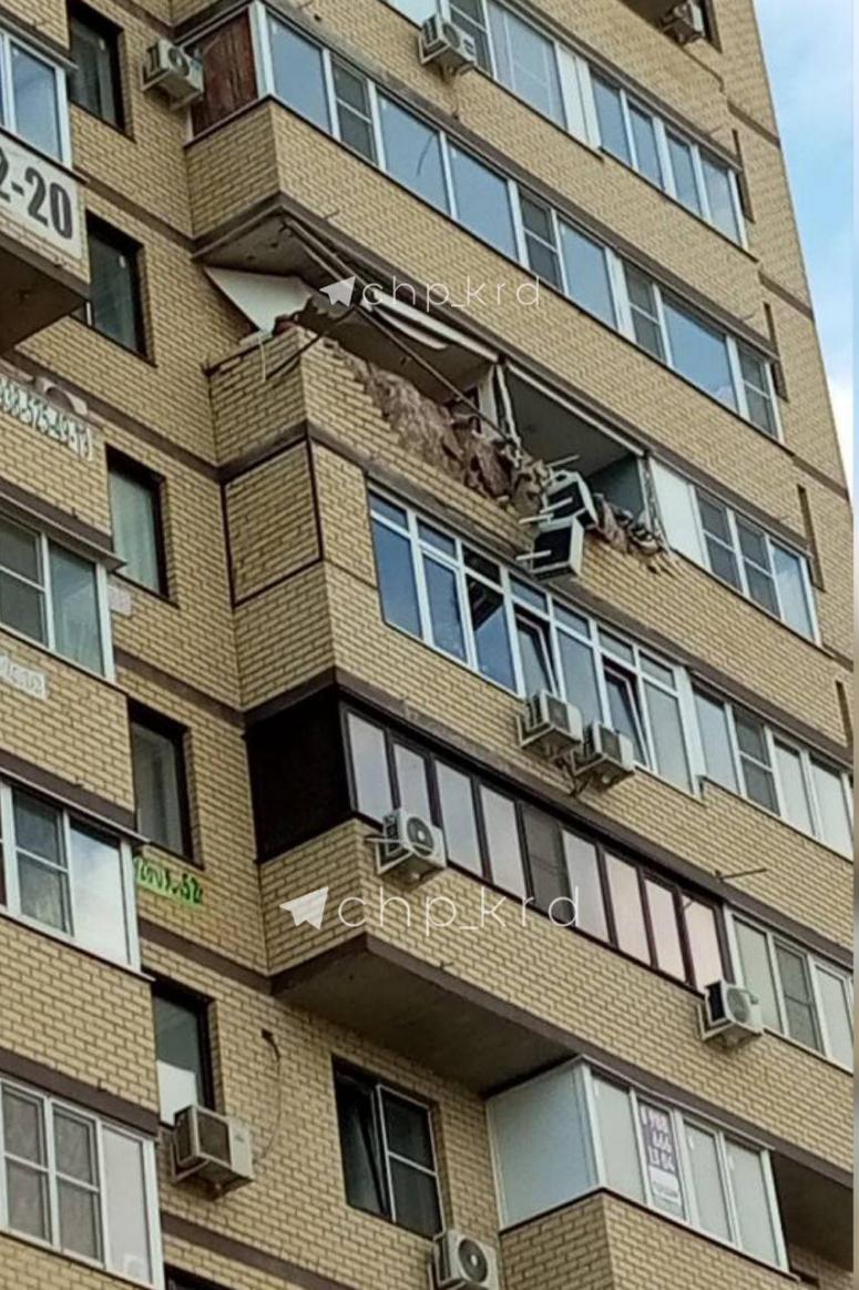 По предварительным данным пресс-службы УМВД России по Краснодару, балкон мог рухнуть из-за взрыва в квартире туристического газового баллончика.