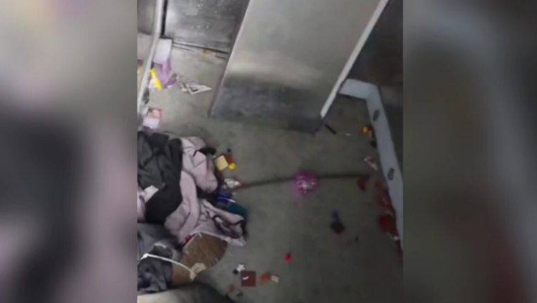 На кадрах видно, что вандалы выломали двери лифта, повредили кабину, сожгли камеру видеонаблюдения, оставили граффити на стенах и разбросали внутри мусор.