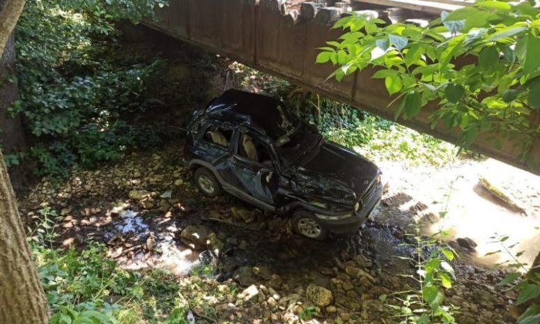 Днем 21 июня водитель автомобиля ТагАЗ спровоцировал ДТП, двигаясь по улице Подлесной в станице Лесогорской Апшеронского района Кубани с нарушением скоростного режима. Переезжая реку по мосту, он не справился с управлением, машина рухнула вниз и опрокинулась.