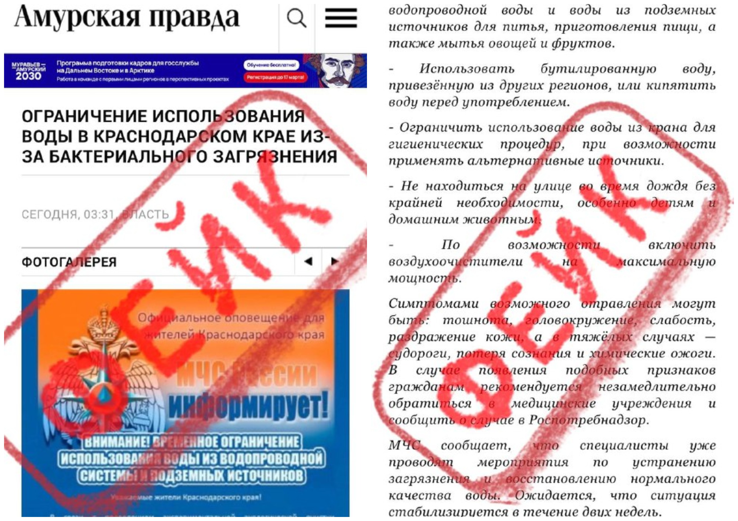 На сайте “Амурская правда” опубликована информация об ограничении использовании воды в Краснодарском крае. В статье указано, что бактерии попали в воду якобы во время экспериментов по очистке пляжей от мазута. Сейчас материал с сайта уже удален.