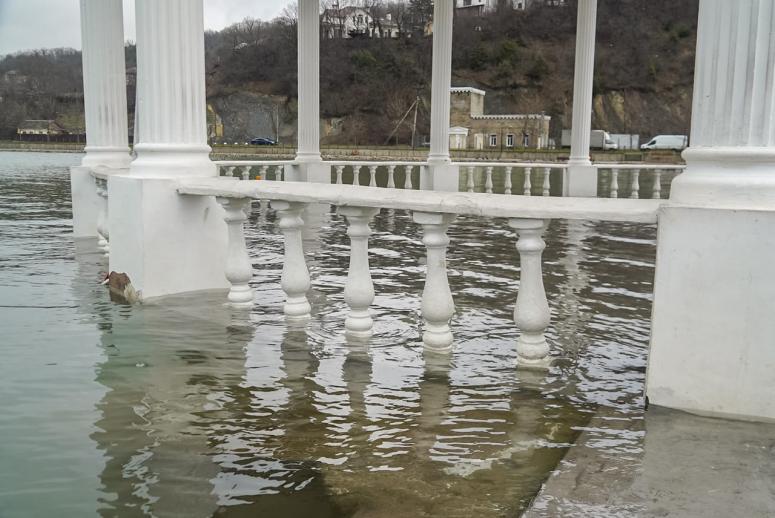 Из-за прошедших сильных дождей на набережную в новороссийском селе Абрау-Дюрсо наступает вода.