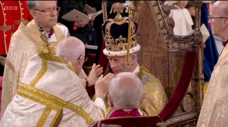 Днем 6 мая в Лондоне состоялась коронация нового монарха — Карла III. Ему вручили королевские регалии — державу, скипетр и кольцо суверена. Архиепископ Кентерберийский Джастин Уэлби возложил на его голову корону святого Эдуарда Исповедника.