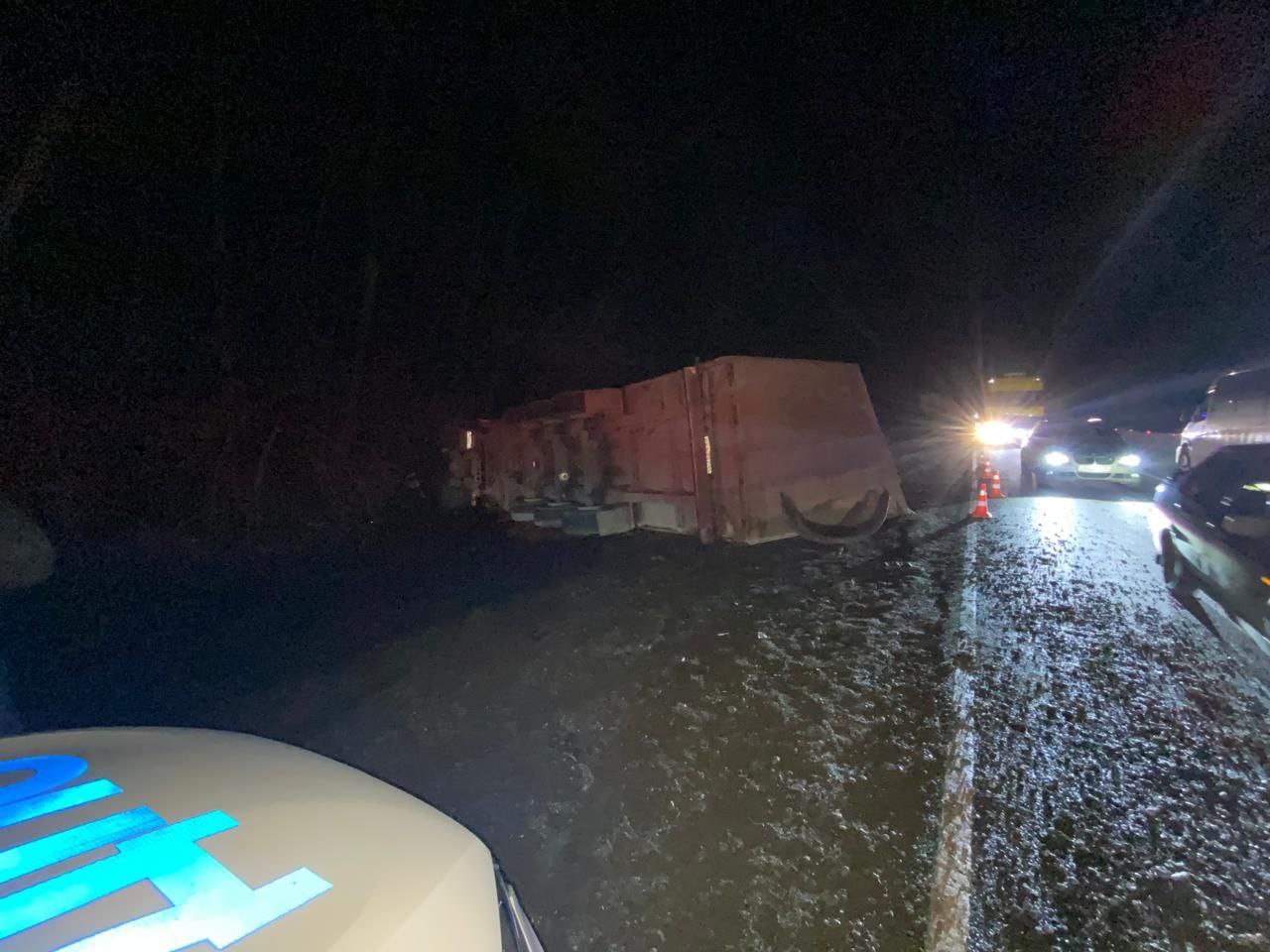 По информации полиции, Volkswagen Polo выехал на встречную полосу движения, где врезался в грузовик Iveco. От удара большегруз также выехал на "встречку" и задел Mitsubishi Lancer и Ford Fiesta. Не удержавшись на дороге, фура упала в кювет.