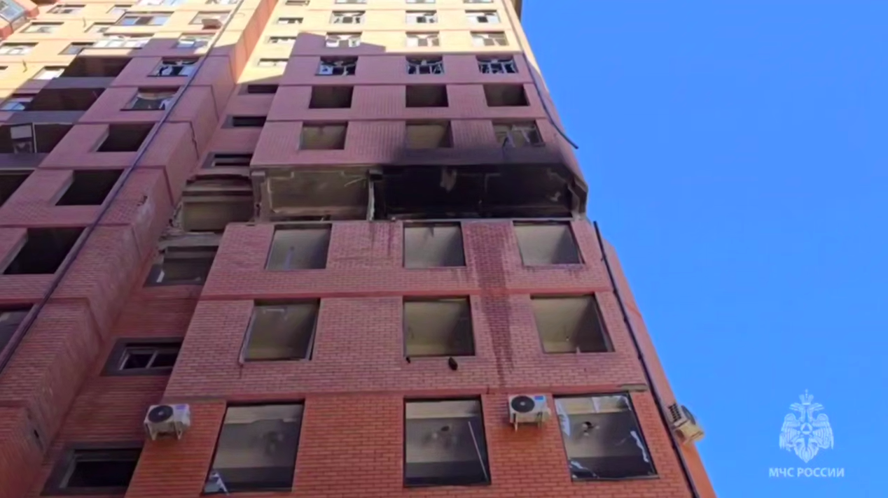 Из здания эвакуировали 150 человек. Открытое горение уже потушили. Взрывом выбиты окна в пяти многоэтажных домах, повреждены 50 припаркованных во дворе машин. На кадрах МЧС также видно, что рухнула часть стены в наиболее повреждённой квартире.