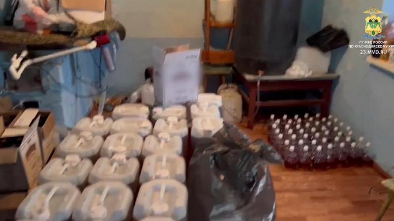 В частном доме станицы Натухаевской Анапы полицейские обнаружили нелегальный цех по производству коньяка и чачи. Там они увидели коньяк в канистрах, ящики с бутылками, оборудование для изготовления алкоголя и так далее. Всего было описано 560 литров чачи и коньяка.