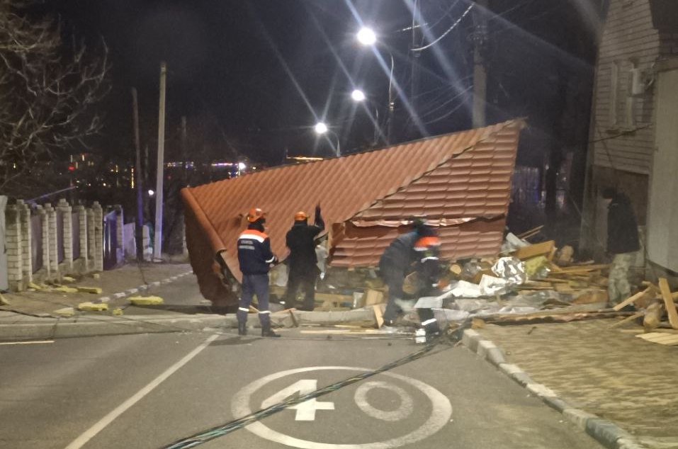Вечером 7 февраля на улице Лавандовой в Центральном районе Новороссийска сильные порывы ветра сорвали крышу с частного дома. При падении на проезжую часть сорванная конструкция сломала опору освещения.