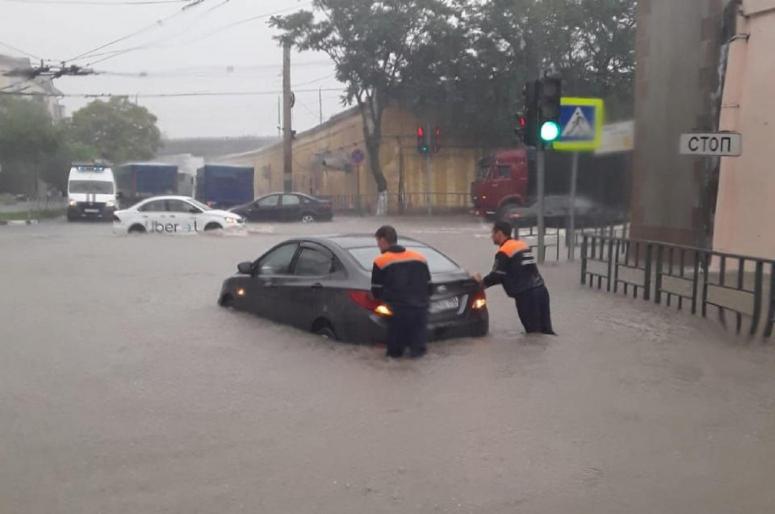 Сегодня утром, 2 августа, на Новороссийск обрушился дождь. Часть улиц ушли под воду. Одна из самых сложных ситуаций сложилась в районе улицы Элеваторная. Там автолюбителям пришлось обращаться за помощью к городской службе спасения.