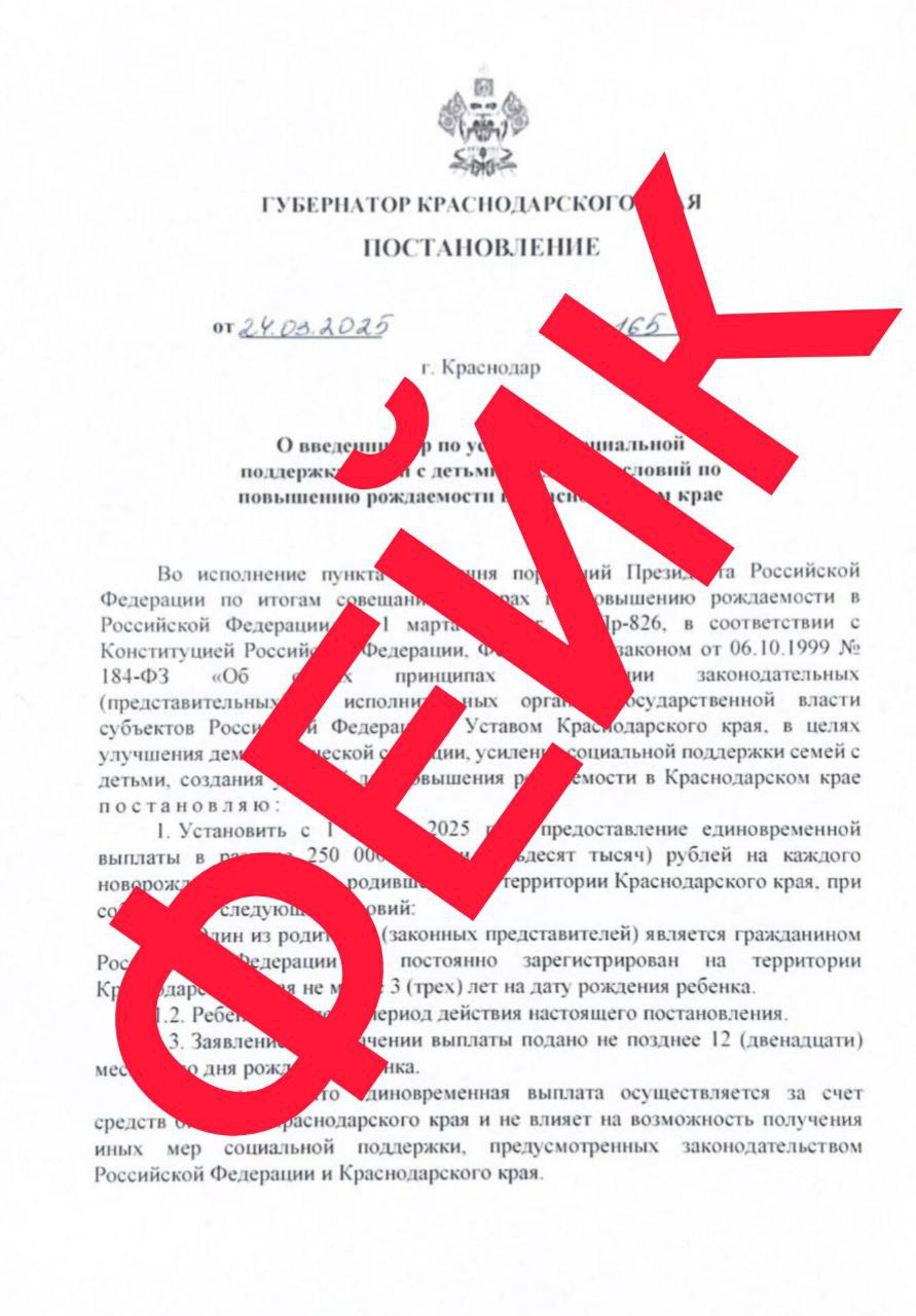 Кроме того, подобный документ, как потенциально затрагивающий большое количество людей, обязательно должен быть официально опубликован. Но такого пункта в поддельном постановлении нет. И, естественно, ничего подобного на официальном сайте администрации Краснодарского края не опубликовано.