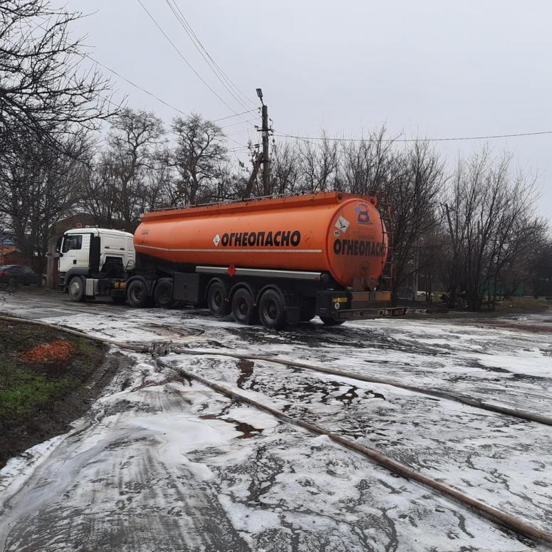В областном МЧС сообщили, что сейчас цистерну закрыли. Вылитый на землю бензин залили специальной пеной, чтобы избежать возгорания. На месте инцидента дежурят восемь человек.