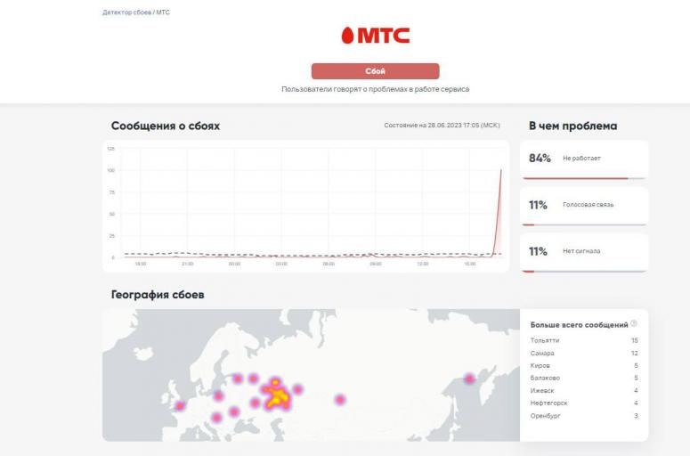 Сегодня, 28 июня, в ряде регионов России произошел сбой в сетях МТС. В результате оказались без связи и интернета абоненты в Самарской, Саратовской, Ульяновской областях, в Татарстане, Удмуртии и Башкирии, Оренбургской области и Новосибирске.
