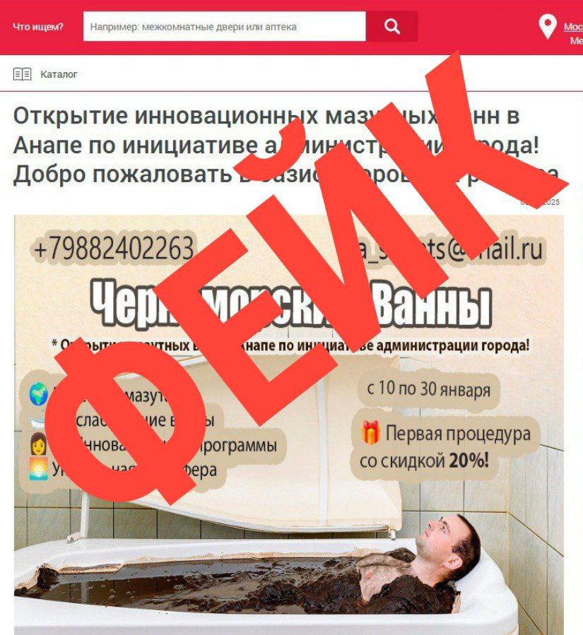 На нескольких сайтах в интернете, Telegram-каналах распространяют информацию о якобы открытии в Анапе инновационных мазутных ванн по инициативе администрации города.