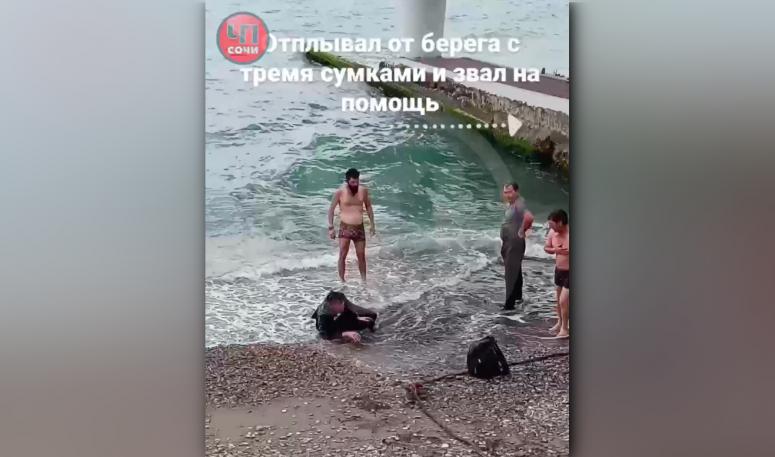 На одном из пляжей Сочи в микрорайоне Кудепста 28 апреля из моря спасли мужчину, который пошёл в воду в одежде и с тремя сумками. По словам очевидцев, мужчина отплыл от берега и начал звать на помощь.