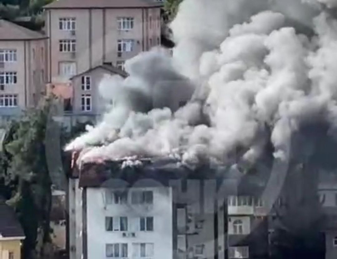 Горящая мансарда в доме на Альпийской в Сочи / кадр из видео, ЧП Сочи