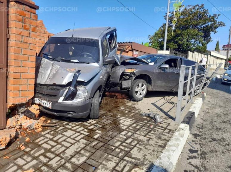 ​В Сочи машину “впечатали” в кирпичный забор частного дома
