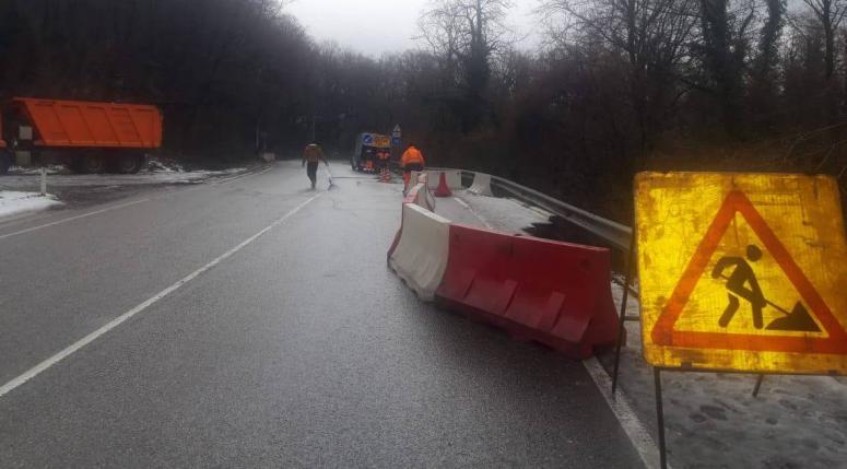 В Лазаревском районе Сочи около села Волконка активизировался оползень. Из-за подвижки грунта участок федеральной трассы А-147 Джубга – Сочи просел.