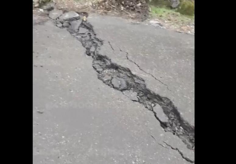В Сочи оползень привел к появлению на дороге огромной трещины