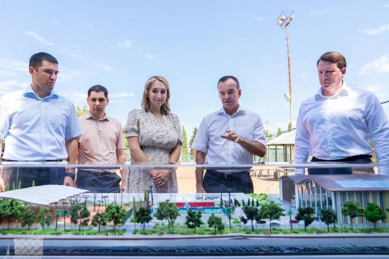 Олимпийская чемпионка, почетный гражданин Сочи Елена Веснина и мэр курорта Алексей Копайгородский показали губернатору Кубани Вениамину Кондратьеву проект теннисной академии.