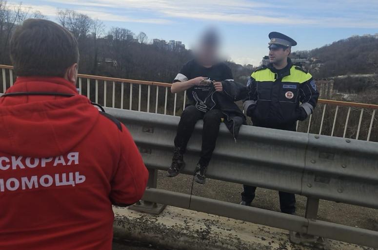 Находясь на маршруте патрулирования на улице Транспортной в Хостинском районе курорта, инспекторы полка ДПС старшие лейтенанты полиции Артем Цатурян и Александр Золотарев заметили на мосту женщину, которая перелезла через ограждение, собираясь спрыгнуть с 20-метровой высоты.
