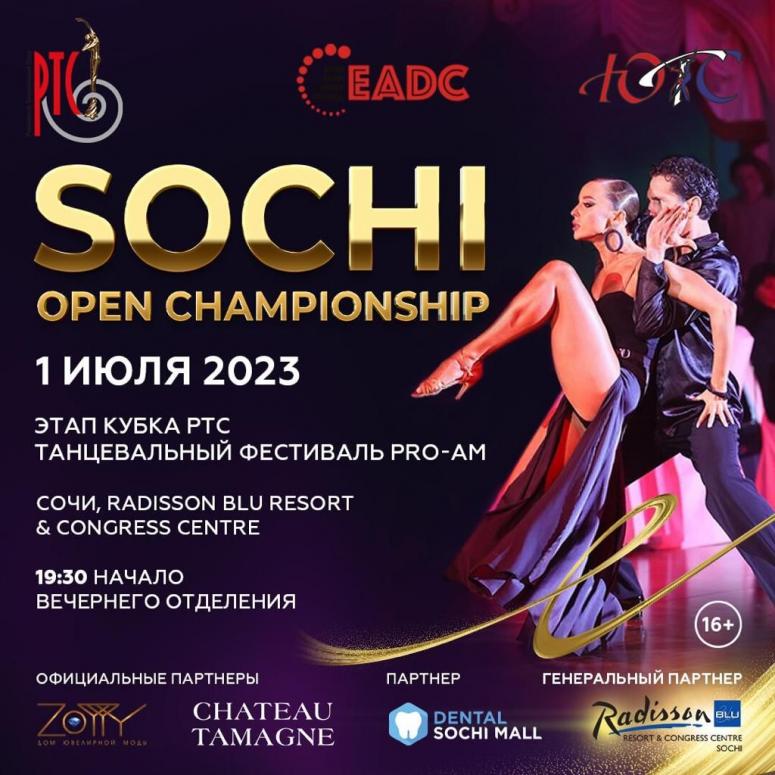 1 июля 2023 года в Сочи состоится крупный танцевальный фестиваль – этап кубка Российского танцевального союза – SOCHI OPEN CHAMPIONSHIP. Вечернее отделение начнется в 19:30 в престижном Radisson Blu Resort & Congress Centre, Sochi 5*, расположенном по адресу Голубая ул., 1А, зал PREMIER.