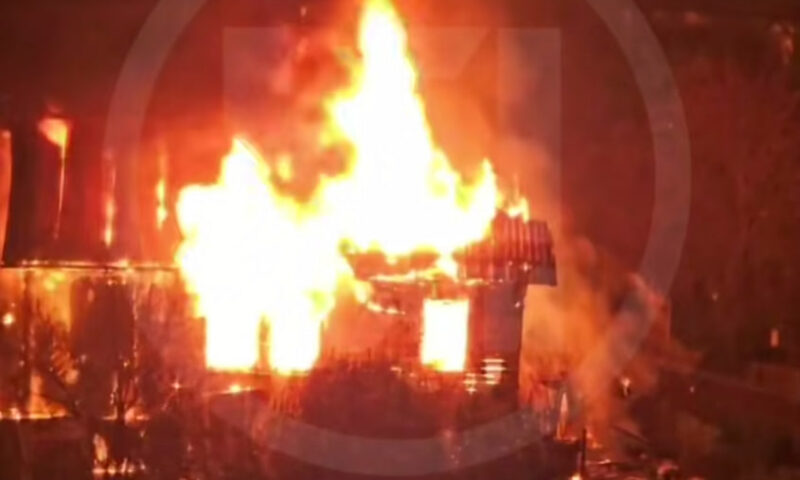 Около часа огнеборцы тушили пожар на улице Видовой в Хостинском районе Сочи. Жертв избежать удалось, но здание полностью выгорело.