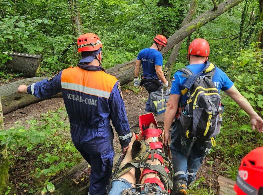 Сотрудники отряда “Кубань-СПАС” зафиксировали ногу, положили пострадавшую на носилки и вынесли к медикам. По узким горным тропам спасателям с носилками пришлось идти пять километров.