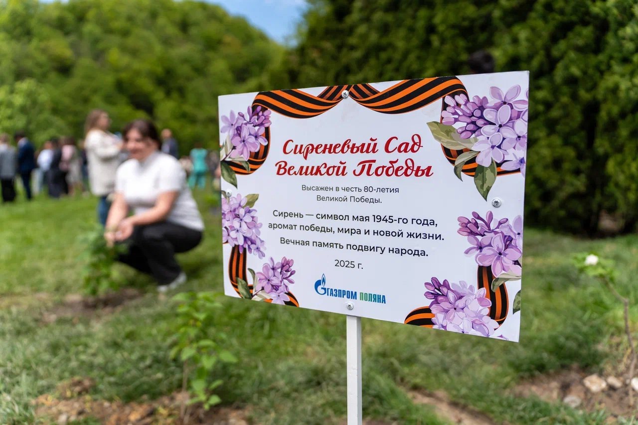 Акция “Сирень Победы” прошла на набережной реки Мзымты. Там сотрудники курорта “Газпром Поляна” высадили 80 кустов сирени. “Это один из главных символов мая 1945 года, символ Победы, мира и новой жизни. Именно с пышными ветками сирени в руках встречали в мае 1945 года советских воинов-освободителей, возвращавшихся домой из Берлина”, - объяснили в администрации Сочи.
