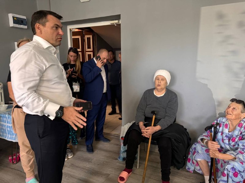 Министр ГО и ЧС Краснодарского края Сергей Штриков общается с эвакуированными жителями Тихорецкого района