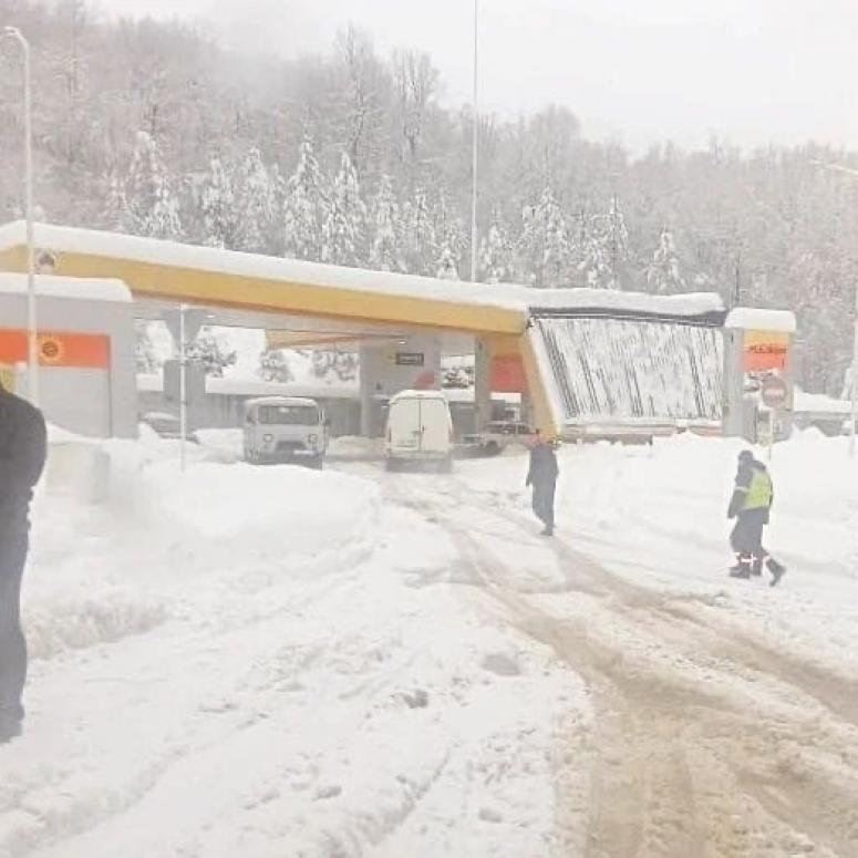 Сегодня, 24 января, в селе Кривенковское Туапсинского района под тяжестью снега рухнула крыша АЗС. Автозаправочная станция сейчас закрыта.
