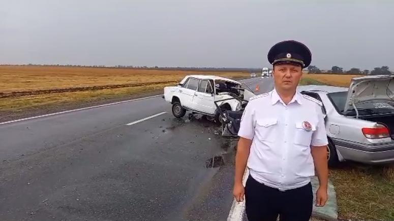 Около половины пятого утра на 511-м километре автодороги Астрахань – Элиста – Ставрополь водитель автомобиля ВАЗ-21061 выехал на встречную полосу и врезался в Toyota Carina.