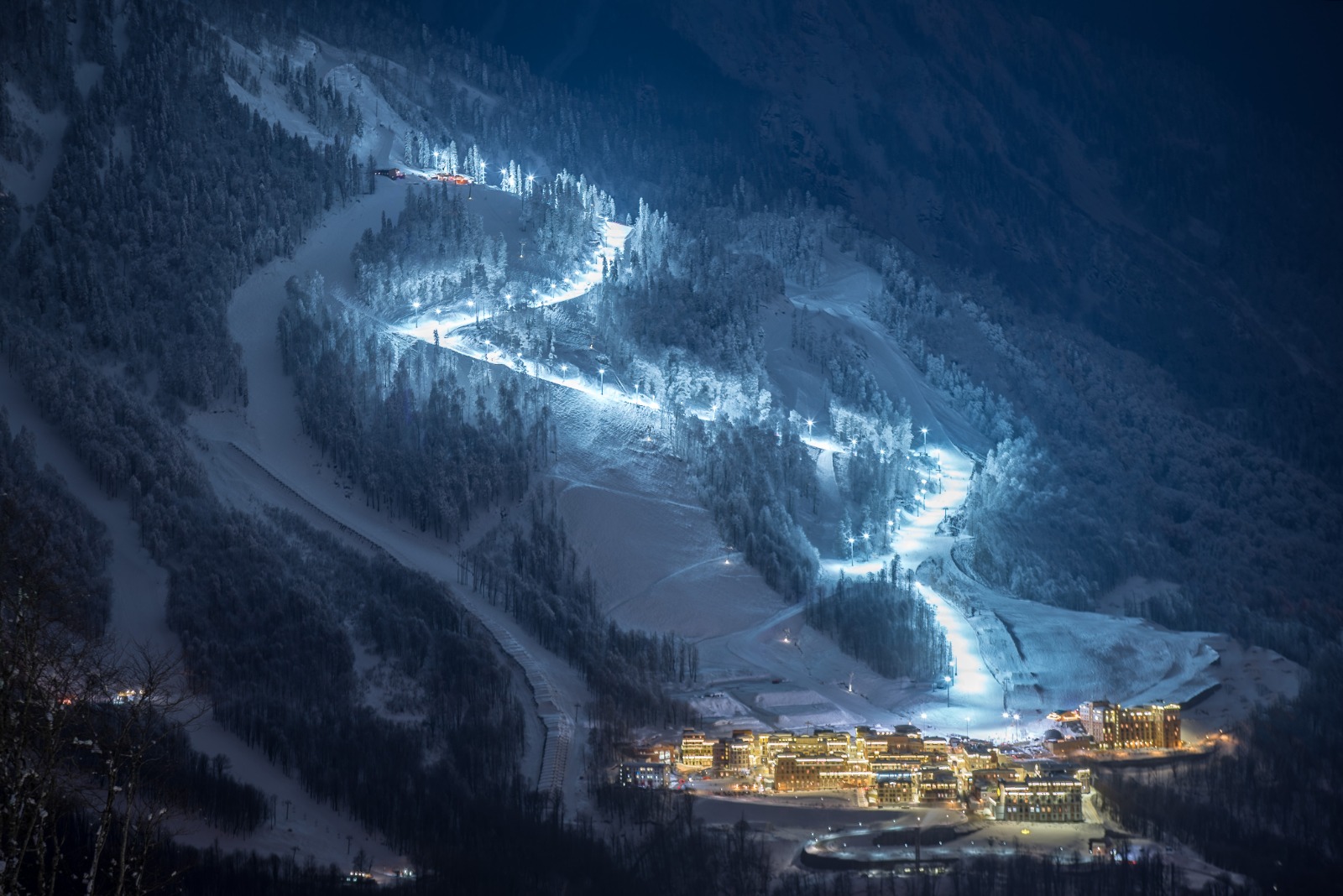 Общая протяженность зон катания на Курорте Красная Поляна достигает 30 км. Из них 5 - освещены. Протяженность трасс считается одной из самых больших в горах Сочи. Горнолыжный сезон на Курорте открылся 6 декабря.