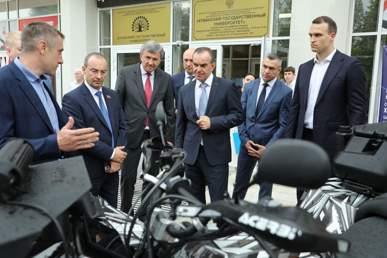 «Сегодня мы встречаемся в КубГУ – одном из достойнейших вузов страны. Современный университет – гордость для всего края, как и достижения наших молодых ученых. Именно им предстоит поддерживать превосходство региона и страны в меняющемся мире, добиться прорыва во всех сферах экономики. В основе преимуществ стоят инновации, талант инженеров, конструкторов, разработчиков. Технологии выходят на передний план, и мы сами у себя должны их создавать. Для этого в Краснодарском крае есть все условия. Уже четыре года вузы участвуют в программе «Стартап как диплом», которая дает возможность реализовать бизнес-идеи еще во время учебы. В 2022 году первые 15 проектов прошли защиту в четырех кубанских университетах. В этом году программу завершили 59 проектов из шести вузов и одного колледжа. Прорывные идеи готов поддерживать краевой Фонд развития инноваций. С 2021 года он помог инноваторам привлечь более 600 миллионов рублей», – сказал Вениамин Кондратьев.