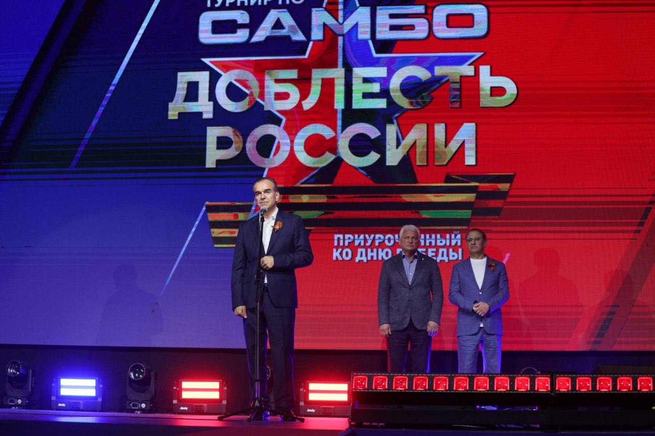 Губернатор Краснодарского края Вениамин Кондратьев посетил ежегодный турнир по самбо «Доблесть России», приуроченный к 80-летию Великой Победы. Соревнования прошли в краевой столице в третий раз.