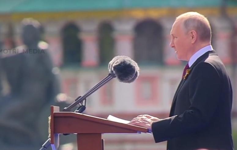 Перед собравшимися выступил президент России Владимир Путин. “Мы считаем, что любая идеология превосходства отвратительна, преступна и смертоносна, но западные элиты по-прежнему твердят о своей исключительности. Цель Запада — добиться уничтожения нашей страны, перечеркнуть итоги Второй мировой войны, сломать систему международного права”, - заявил президент. При этом он отметил, что для России нет враждебных народов ни на Западе, ни на Востоке. Что касается украинского народа, то, по словам Путина, он стал заложником госпереворота.