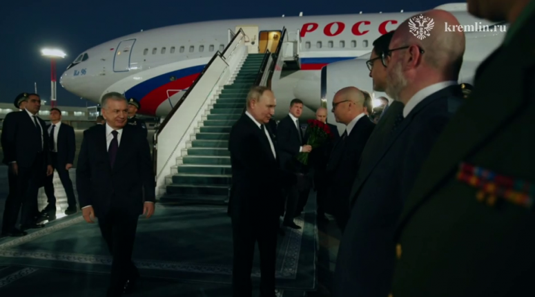 Президент России Владимир Путин отправился на переговоры в Узбекистан. В настоящий момент он уже прилетел в страну, где у трапа самолёта его лично встретил президент Шавкат Мирзиёев.