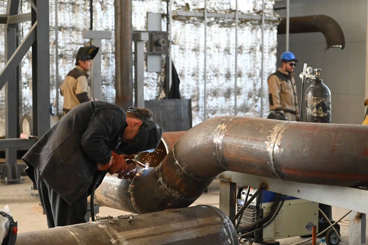 В котельной уже смонтировали котлы, прокладывают трубопровод и начинают монтаж дымовой трубы. Но насосы на объект еще не поставили.