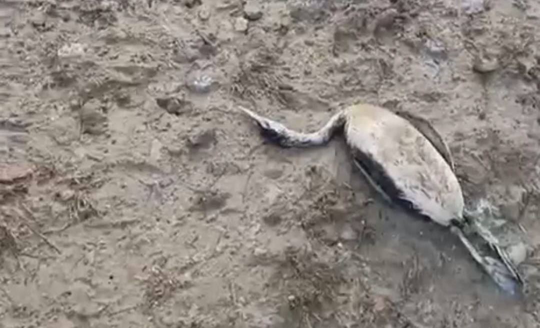 погибшая чомга на берегу Таманского залива / кадр из видео