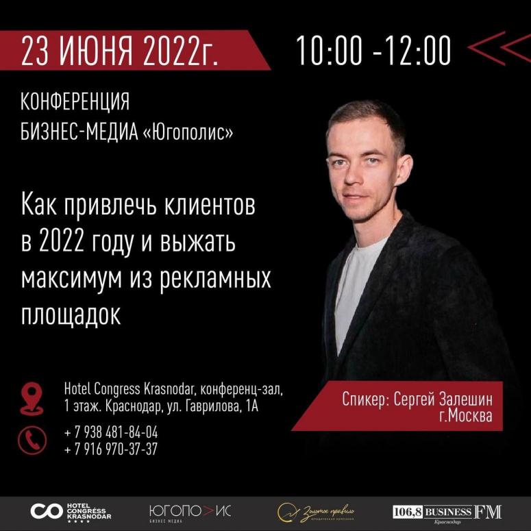 Третья бизнес-конференция "Югополиса" на тему "Где брать клиентов в 2022 году и как выдать максимум из рекламных площадок" состоится 23 июня в Hotel Congress Krasnodar с 10 до 14 часов.