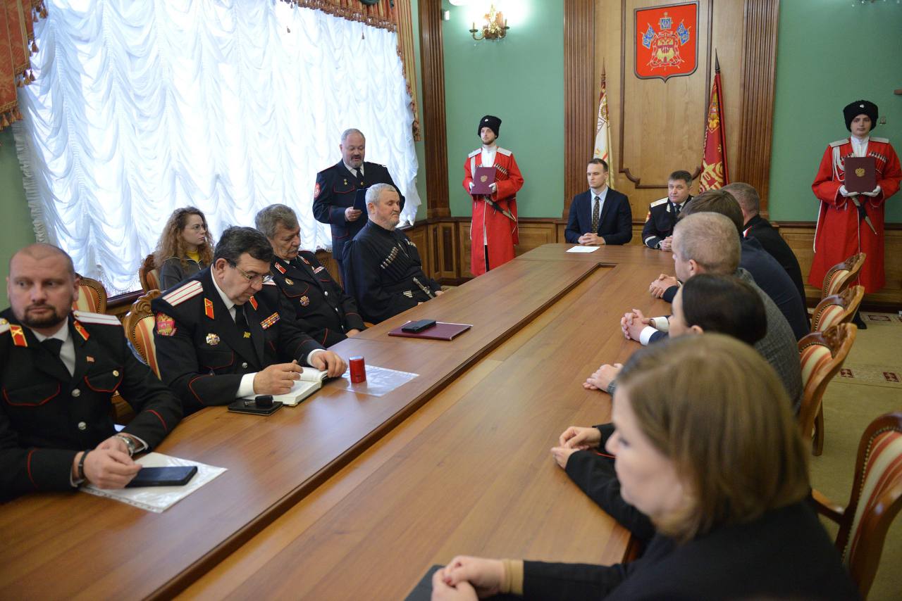 Дальнейшее развитие казачьей экономики обсудили на совещании в Краснодаре. В нем приняли участие замглавы администрации Краснодарского края, войсковой атаман Александр Власов и руководитель департамента развития бизнеса Василий Воробьев, атаманы и руководящий состав краевых профильных фондов. Также на мероприятии Кубанское казачье войско и департамент развития бизнеса и внешнеэкономической деятельности края подписали соглашение о сотрудничестве.