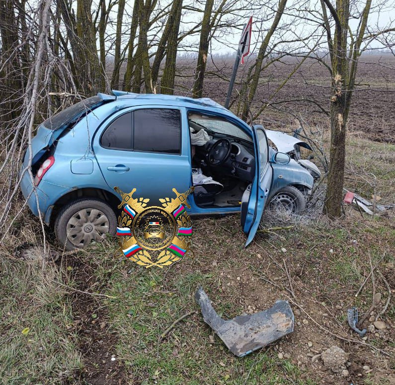 Авария произошла 29 декабря в 9:30 на трассе, которая связывает станицы Ладожскую и Кирпильскую. 39-летняя женщина за рулём Nissan March превысила скорость, вылетела с дороги вправо и врезалась в дерево.