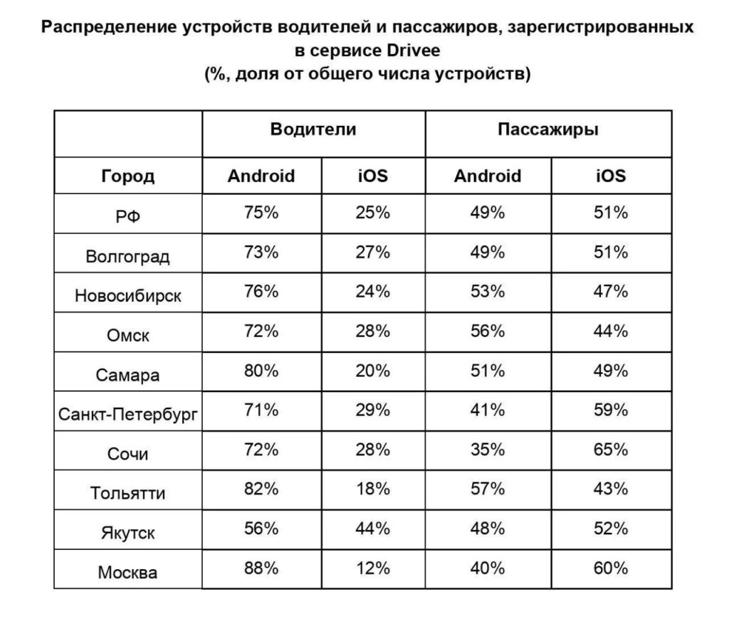 Водители — на Android, пассажиры — на iPhone: Drivee составил аналитический портрет водителя в Сочи