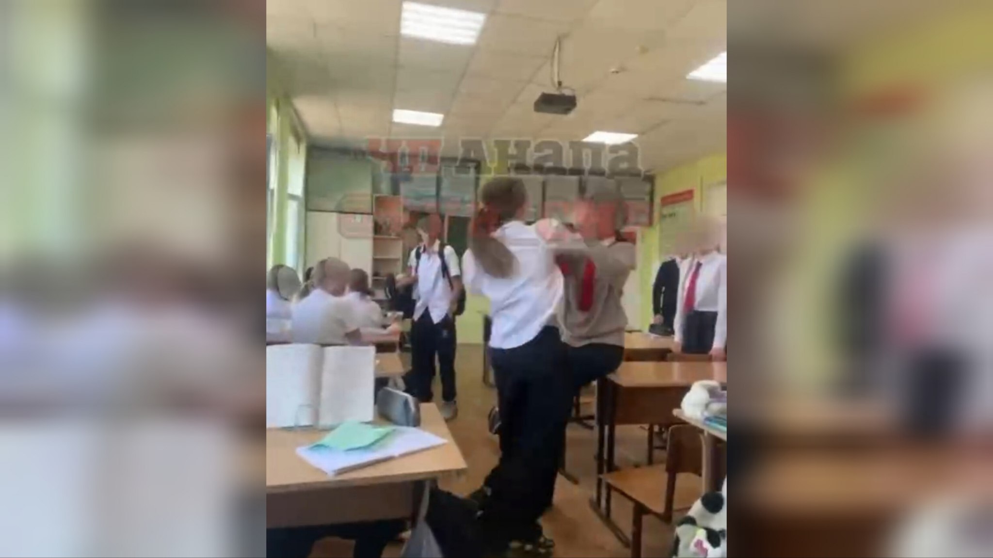 На кадрах (18+) видно, как две девочки наносят друг другу удары руками по лицу. Всё это происходит на глазах у одноклассников, которые, вместо того чтобы разнять участниц конфликта, подбадривают их.